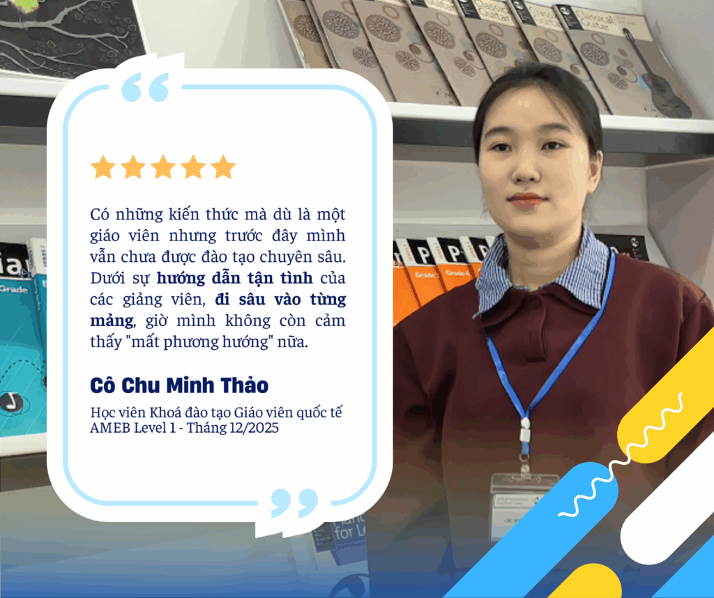 Khoá đào tạo giáo viên quốc tế AMEB Level 1 Tháng 12/2025 không chỉ là một chương trình đào tạo, mà còn là cột mốc đánh dấu sự phát triển bền vững của cộng đồng giáo viên âm nhạc theo chuẩn quốc tế tại Việt Nam. Thông qua khóa học, AMEB Vietnam tiếp tục khẳng định cam kết đồng hành cùng cộng đồng giáo viên trong việc nâng cao chất lượng giảng dạy, chuẩn hoá chuyên môn và mở rộng cơ hội phát triển nghề nghiệp.