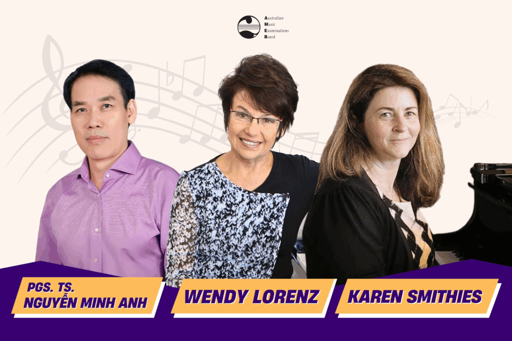 Một trong những yếu tố tạo nên uy tín của kỳ thi chứng chỉ âm nhạc quốc tế AMEB là đội ngũ giám khảo sở hữu năng lực chuyên môn vượt trội cùng kinh nghiệm giảng dạy và biểu diễn dày dặn. Trong kỳ thi trực tiếp tháng 11/2025 tại Việt Nam, sự góp mặt của ba giám khảo AMEB đã mang đến cho các thí sinh chất lượng khảo thí chuẩn mực, nghiêm túc và hoàn toàn nhất quán theo tiêu chuẩn quốc tế: